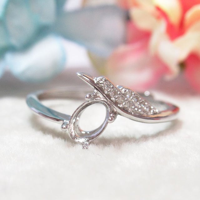 6×4㎜ チルト リーフCZ  S925 リング台 SV