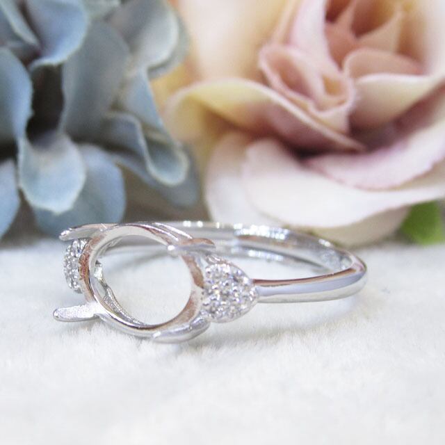アウトレット9×7㎜ ハーフムーンCZ リング台 S925 SV