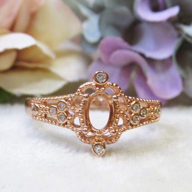 アウトレット6×4㎜ レースフレームサイドCZ S925 リング台 PG
