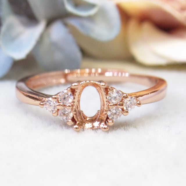 6×4㎜ トリプルCZ ストーン向け S925 リング台 PG