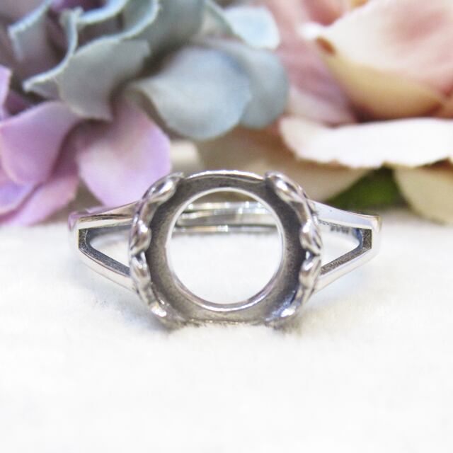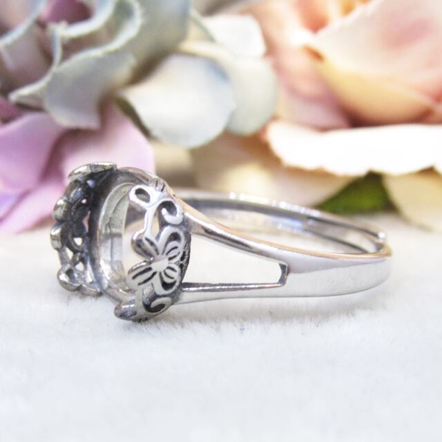 9㎜ サイドフラワー  S925 リング台  銀古美