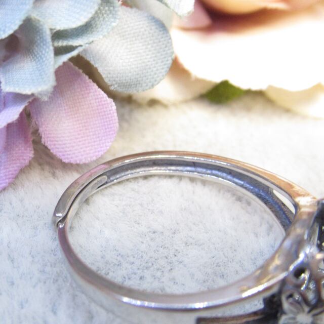 9㎜ サイドフラワー S925 リング台 銀古美