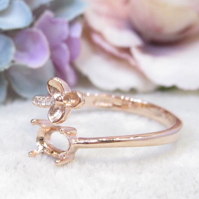 6×4㎜ 3ペタル CZライン スパイラル S925 リング台 PG