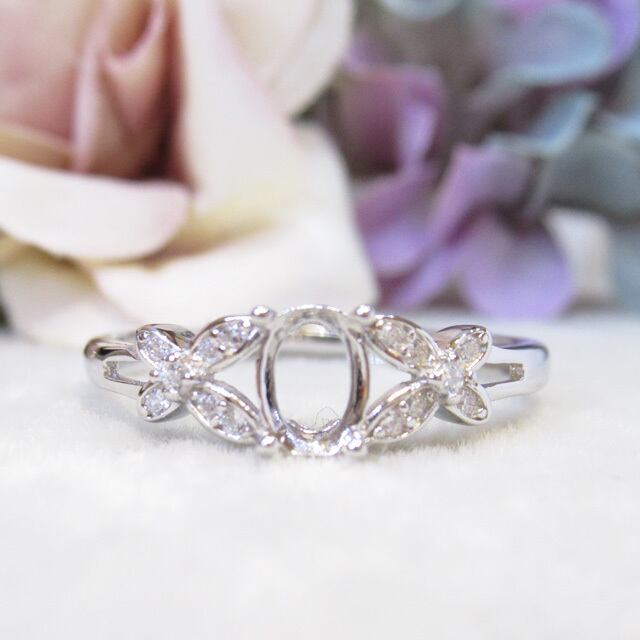 アウトレット 6×4㎜ バタフライ クロスCZ S925 リング台 SV