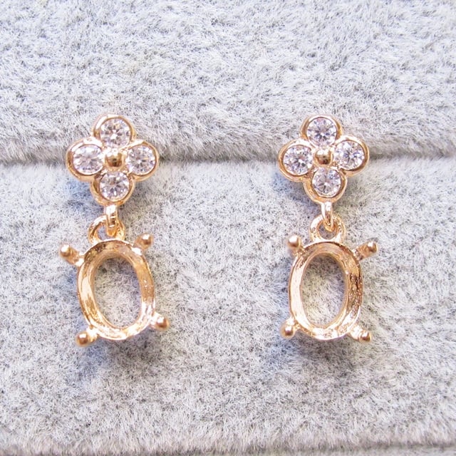 1ペア 8×6㎜ フラワーCZ スイング S925 ピアス セッティング PG