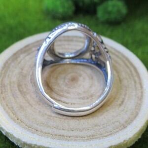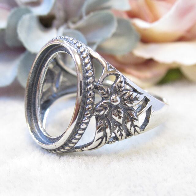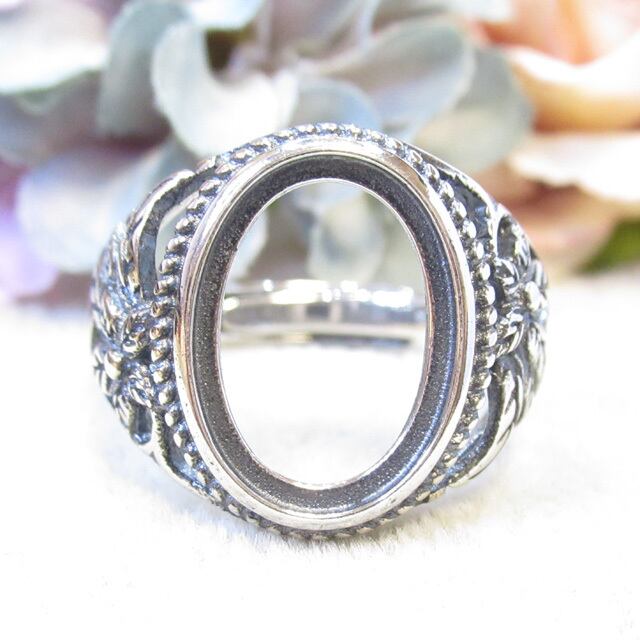 14×10㎜ フラワーレリーフ ベゼル S925 リング台 銀古美
