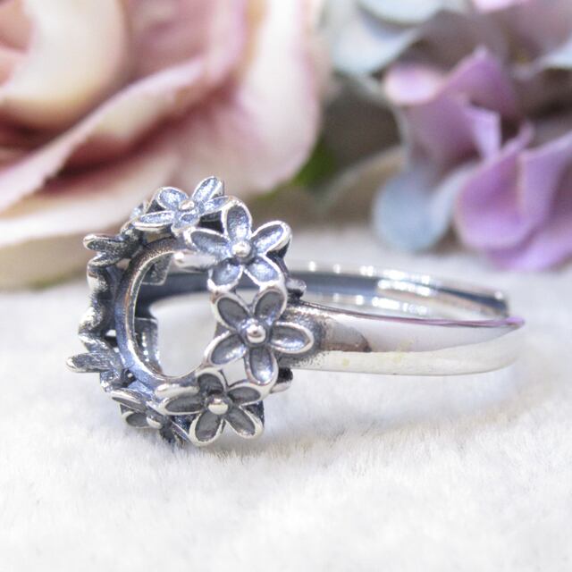 7㎜ フラワーフレーム S925 リング台 銀古美