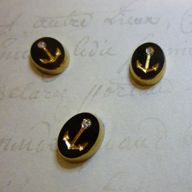 黒のガラスに金色のアンカーの彫が入った