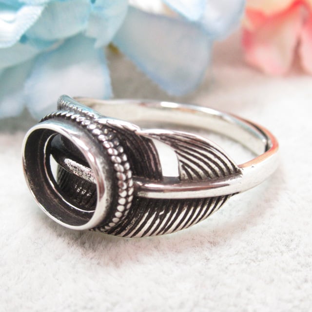 合金 10×8㎜ 横向き 羽 リング台 銀古美