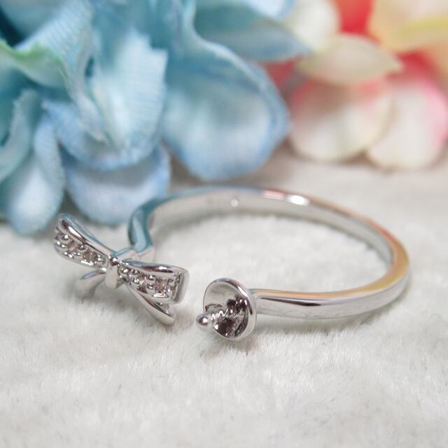6~8㎜ 銅 S925メッキ  ビーズ向け リボンCZ  前開き 芯立て  リング台SV