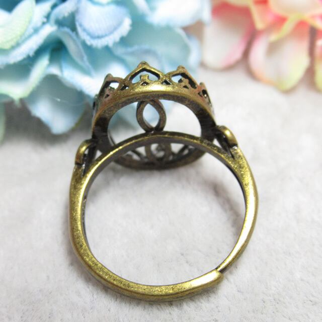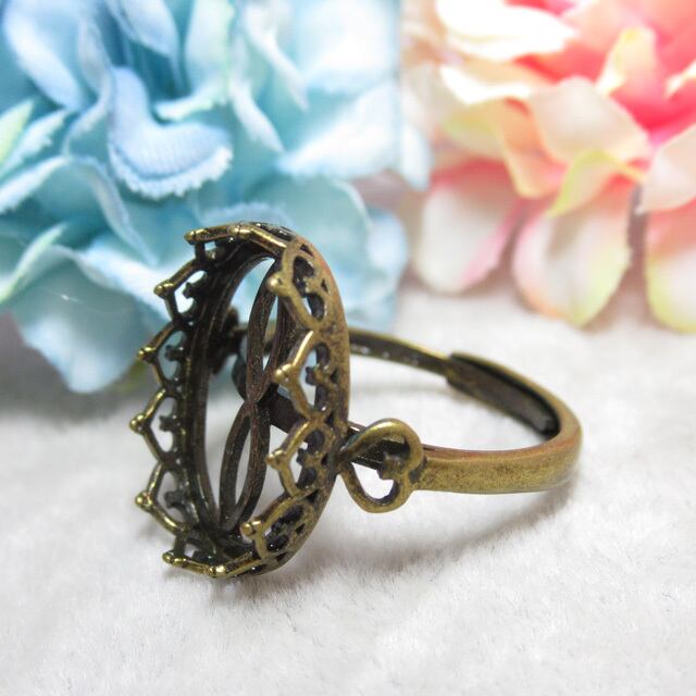 合金  16×12㎜  レースクラウン  リング台  金古美