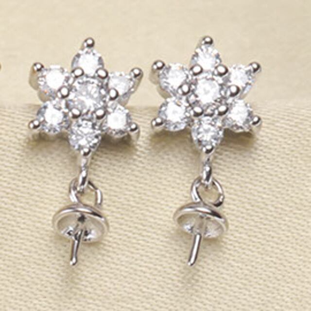 1ペア 8~11㎜向け 半銀 芯立 スノーフレークCZ スイング ピアス  SV