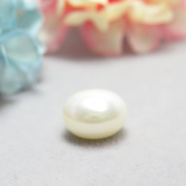 8~9㎜ ラウンド 扁平 片穴 淡水パール  白 A