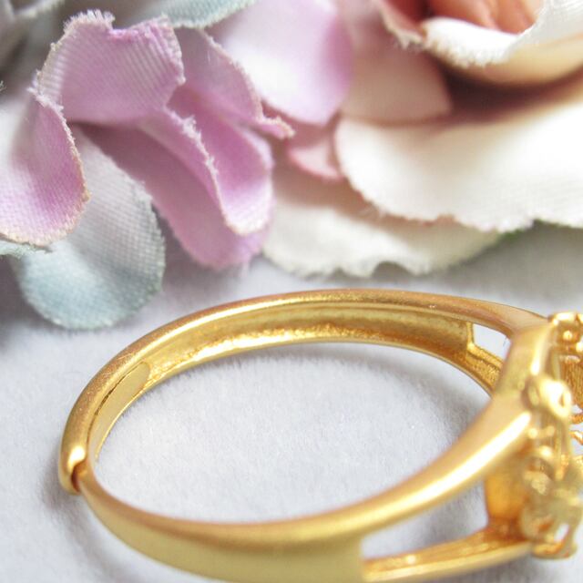 9×7㎜ 合金 サイドフラワー リング台 古代金
