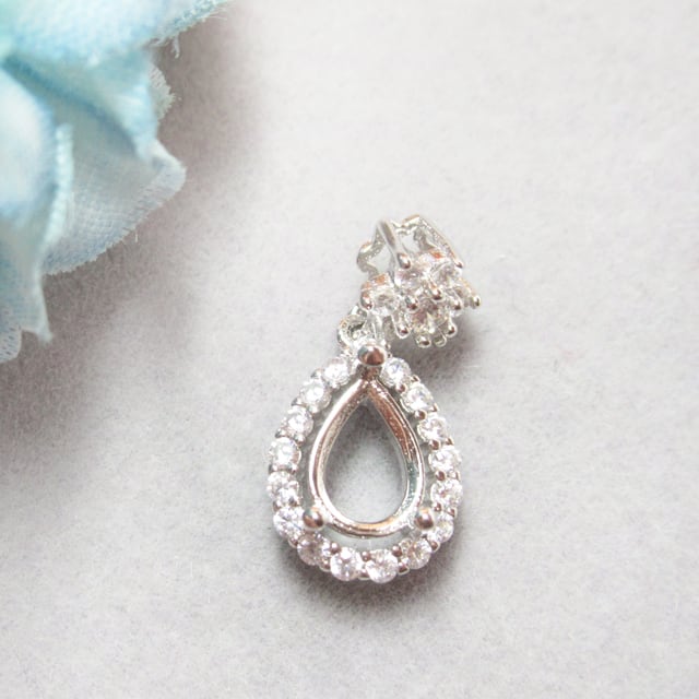 7×5㎜ ドロップ フラワー CZフレーム ペンダント セッティング SV
