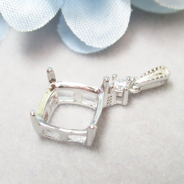 8㎜ スクエア バチカンCZ クロス4爪 S925 ペンダント セッティング SV