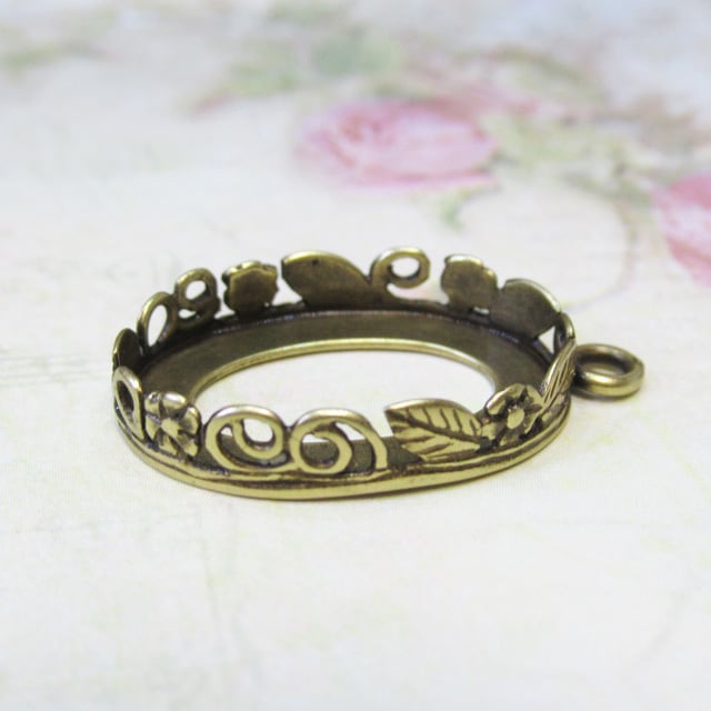 18×13㎜ フラワーリーフ セッティング オーバル 金古美