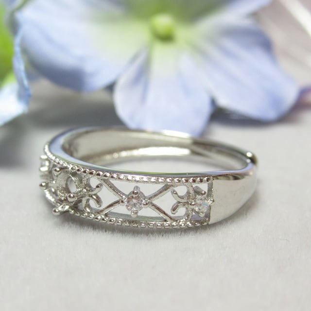 3㎜ ワイド ハート フィリグリー S925 リング台 SV