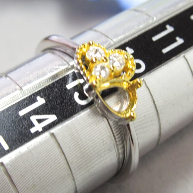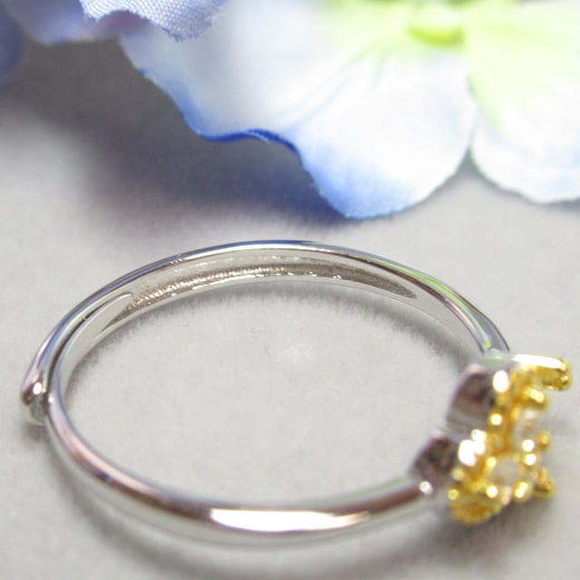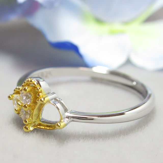 5×4㎜ ドロップ 金爪 ハートCZ S925 リング台 SV