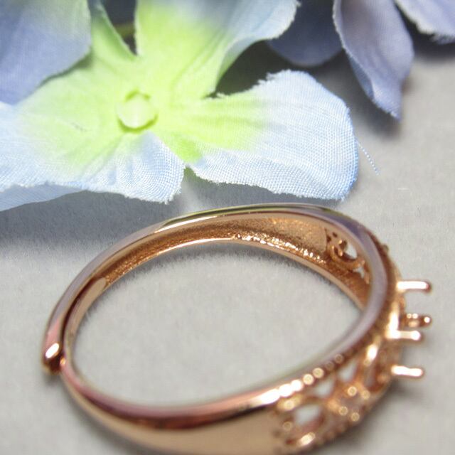 5×4㎜ ハート フィリグリーCZ リング台 S925 PG