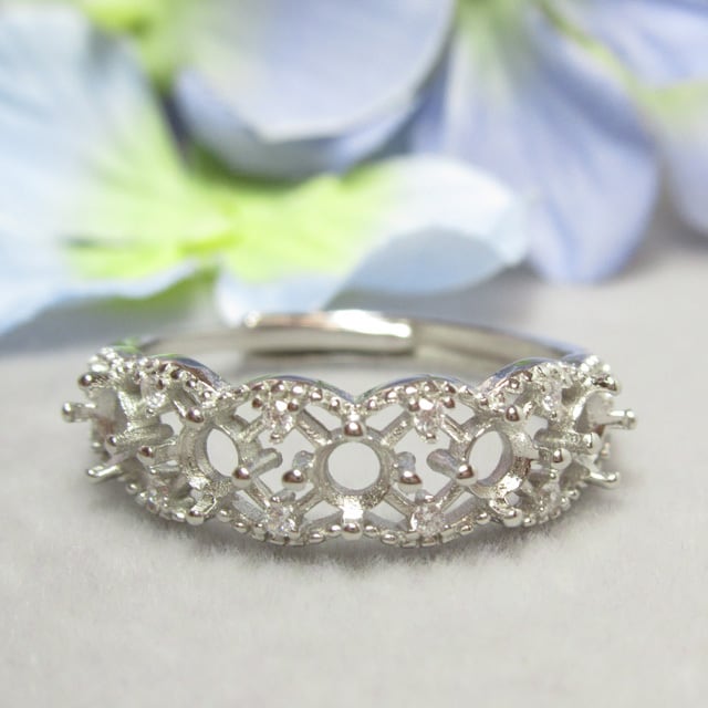 3㎜ 5粒 レースフレーム S925 リング台 SV