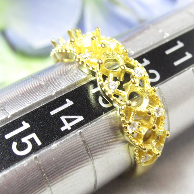 3㎜ 5粒 レースフレーム S925 リング台 YG