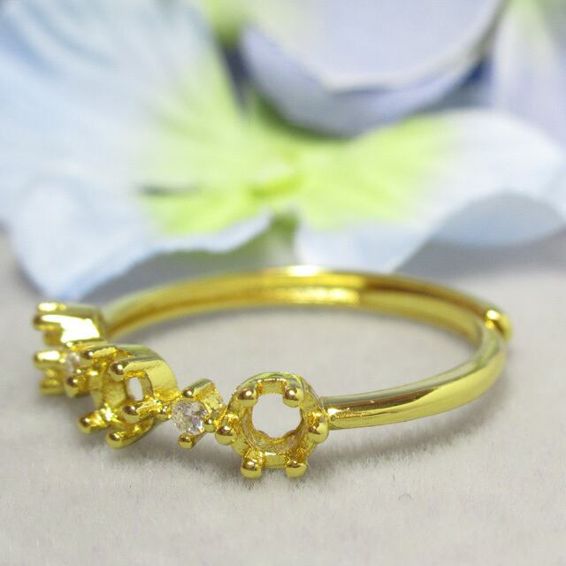 3㎜ 3粒 6爪CZ S925 リング台 YG