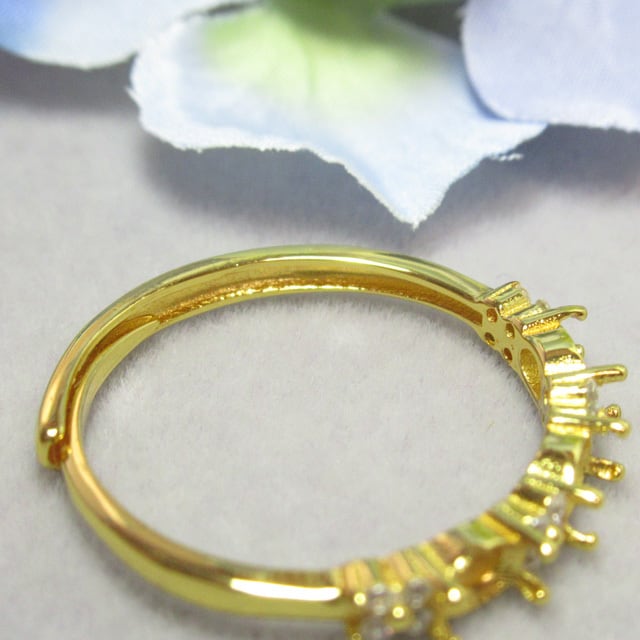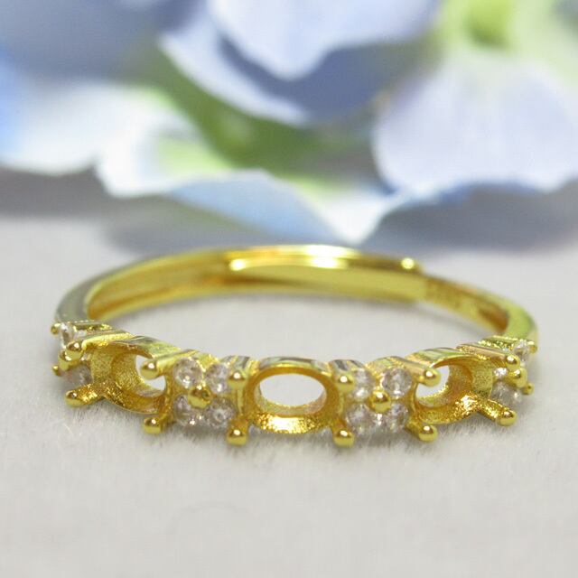 4×3㎜ 横向き 3粒 フラワーCZ S925 リング台 YG