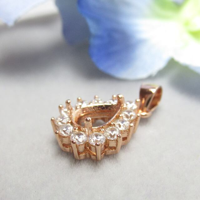 7×5㎜ ドロップ 大粒CZフレーム  ペンダント セッティング  S925 PG