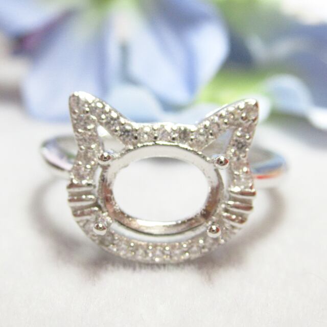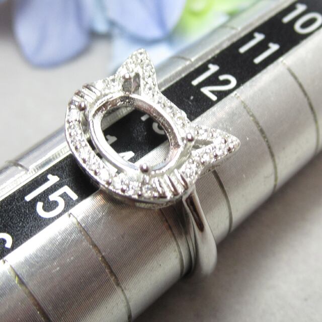 8×6㎜ CZフレーム キャット  S925 リング台 SV