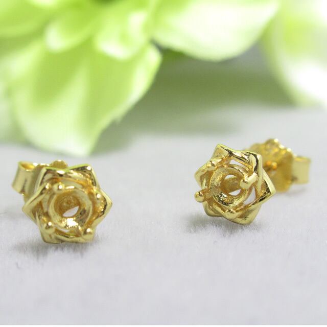 1ペア 3㎜ 6ペタル S925 ピアス セッティング YG