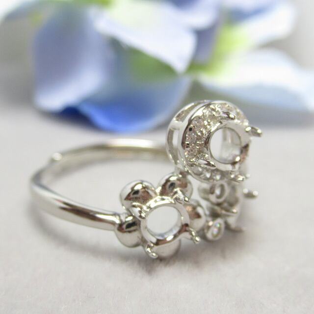 5×4㎜ CZフレーム 4㎜ フラワー S925 リング台 SV