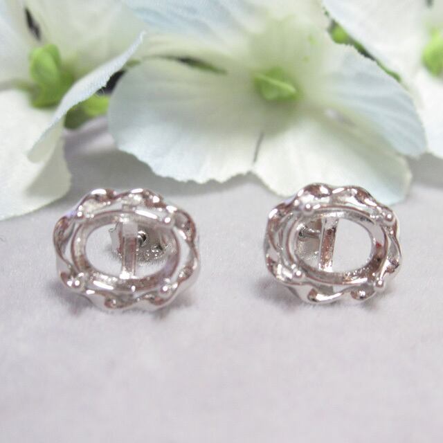 1ペア 8×6㎜ ウェーブ S925 ピアス セッティング SV
