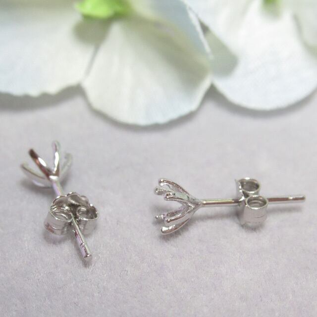 1ペア 4㎜ 立爪 S925 ピアス セッティング SV