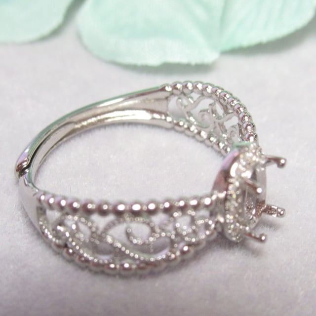 6×4㎜ CZフレーム ミルフィリグリー S925 リング台 SV