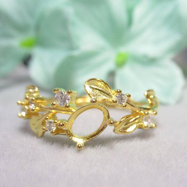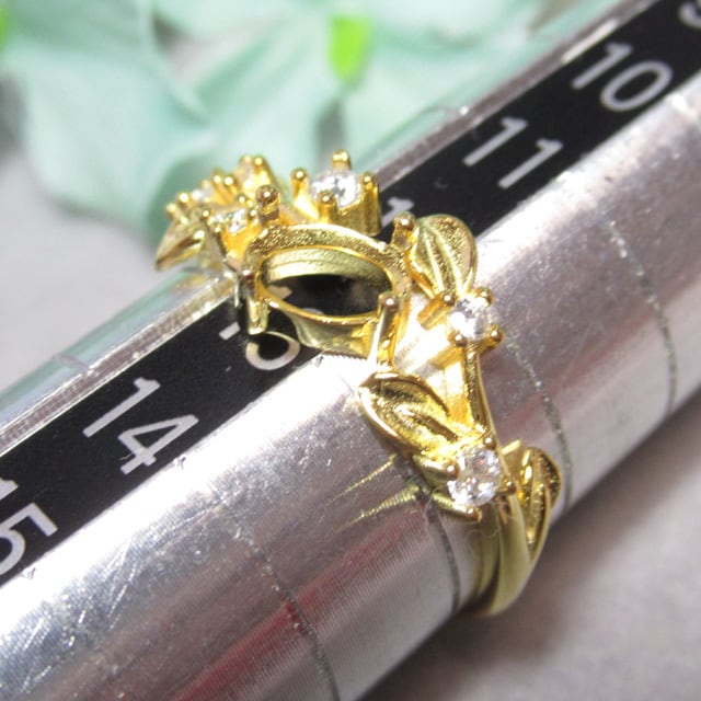 6×4㎜ スラント リーフCZ S925 リング台 YG